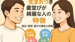 Care-Plaza Blog 歯並びが綺麗で生まれつきの人の特徴と割合を徹底解説|遺伝や原因・親子の関係も解明 「歯並びが綺麗なのは生まれつきの人だけ?」そんな疑問を抱いたことはありませんか。実は、日本人で「生まれつき歯並びが綺麗」といえる人は【2割~3割】に過ぎず、見た目や印象を左右する大きな要素として多くの方が悩みを抱えています。「笑顔に自信がも... 2025.07.25 Care-Plaza Blog