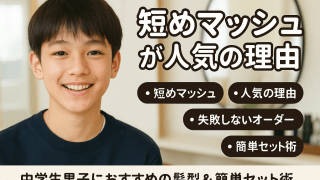 Care-Plaza Blog 中学生男子髪型マッシュの短めが人気の理由と失敗しないオーダー&簡単セット術 「男子中学生の約8割が『他の人とかぶらず、手軽にカッコよく見せたい』と感じていることをご存知でしょうか。特に短めマッシュは、ここ数年で人気が急上昇した髪型です。なぜなら、校則を守りながらもおしゃれと清潔感を両立できるうえ、朝のセットが5分以... 2025.08.28 Care-Plaza Blog