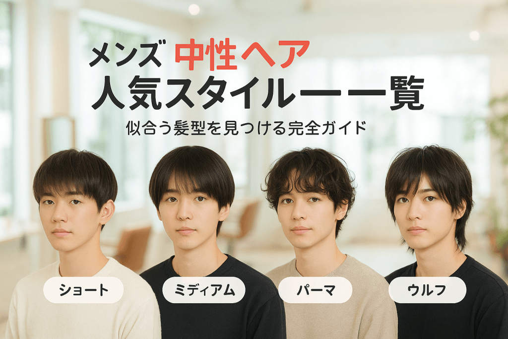 実は、中性的な髪型はショート、マッシュ、ウルフなど多彩なラインナップがあり、日本全国で対応できるサロンも年々拡大中。40代以上にも取り入れやすい上、パーマやカラーなどのアレンジで印象チェンジも自在です。